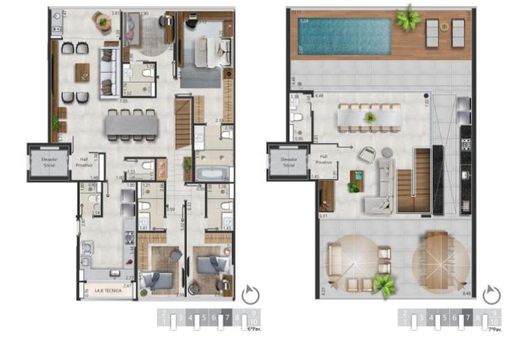 - Sistema de interfone dos apartamentos com a portaria, garagens e áreas de lazer - Água quente nos chuveiros, pia dos banheiros social, suítes e da cozinha - Infraestrutura para instalação de ar-condicionado tipo split - Infraestrutura para triturador de alimentos - Espelhos e box instalados nos banheiros social e suítes. - Revestimentos Linha Premium - Janela envidraçada dando amplitude ao ambiente - Sala em L com espaço para mesa de 8 lugares - Suíte casal com espaço para 3 armários COBERTURA Duplex Meio COM 4 SUÍTES 604, 605, 606 e 607 318,76 m² . - Sistema de interfone dos apartamentos com a portaria, garagens e áreas de lazer - Água quente nos chuveiros, pia dos banheiros social, suítes e da cozinha - Preparação para instalação de ar-condicionado tipo split .
